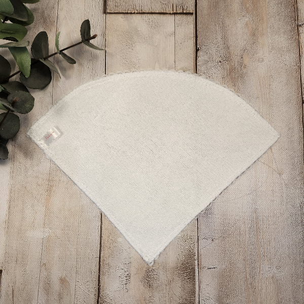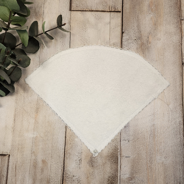 This triangle scarf shape is made from soft velour towelling with one layer, helping to create a smooth and structured look. It is finished with lace along the edges for a delicate, refined touch.