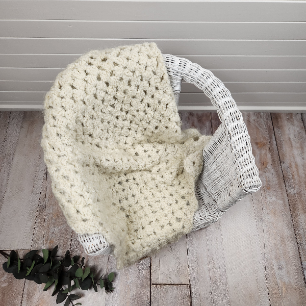 This beautiful crochet baby blanket is oh so soft and fluffy β€” it truly has to be felt in person to appreciate just how luxuriously soft it is!