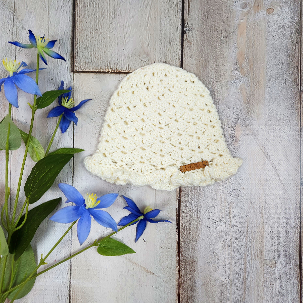 The Averie crochet baby hat is a sweet beanie-style design, delicately handcrafted from soft cotton and gentle on baby’s skin.