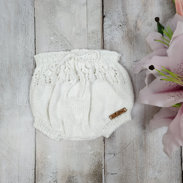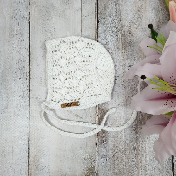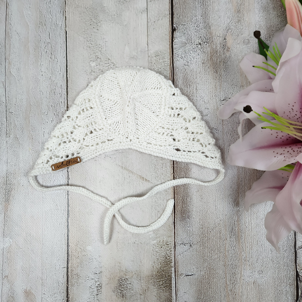 • Knitted ties on bonnet and pants