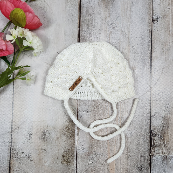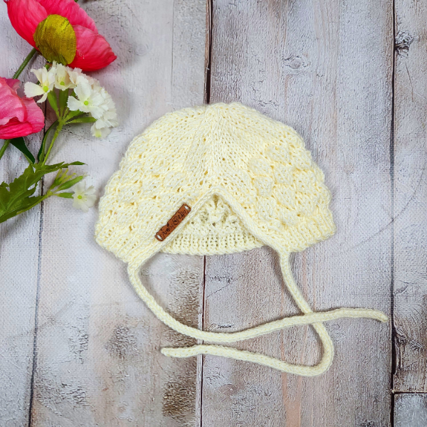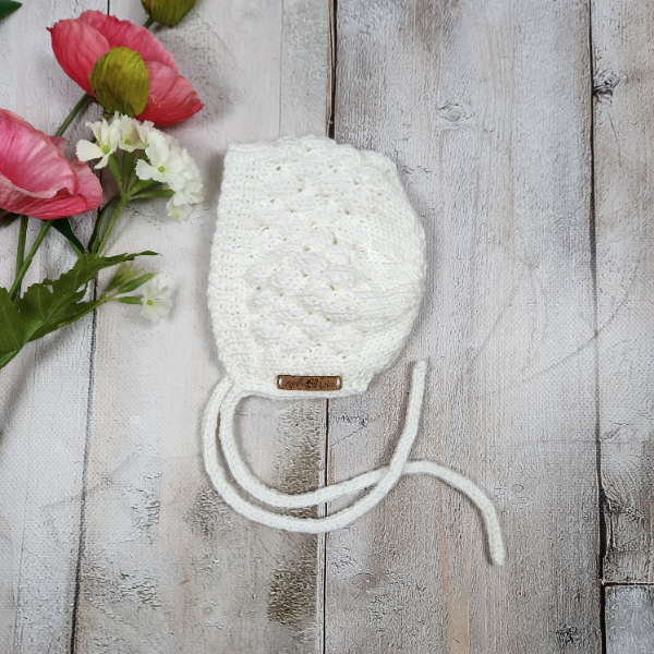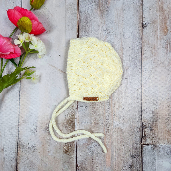 Hand knitted baby bonnet