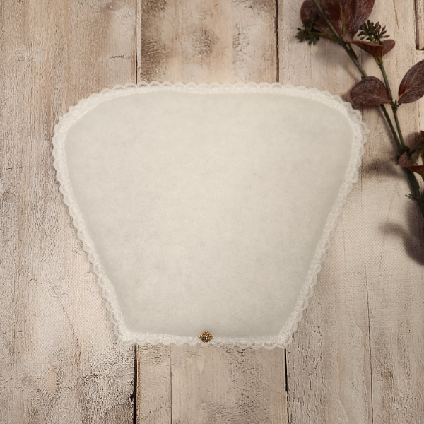 Our Reuleaux scarf shape is crafted from two layers of high-quality wadding to provide a smooth, structured base for your scarf. The edges are delicately finished with lace for an elegant, refined look.